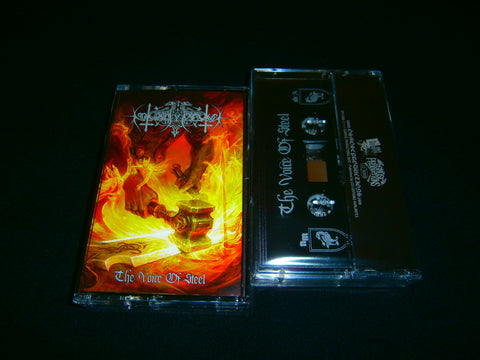 Nokturnal Mortum - The Voice of Steel. 2022 reissue on pro Tape format of their 2009 6th full length album with intro and 7 tracks of Folk Black Metal from Ukraine. Limited Edition comes with 7 panels J-Card. Sealed Item. Recommended for fans of Drudkh, Emperor and Moonsorrow.