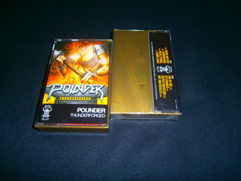 Pounder - Thunderforged. Pro Tape format of their 2024 3rd full length album with 8 tracks of Heavy Metal from the States. Limited Edition comes with 5 panels J-Card. Sealed Item. Recommended for fans of Haunt, Night Demon and Tank.