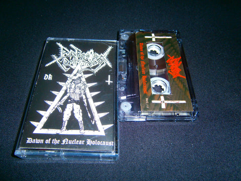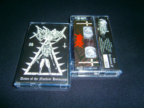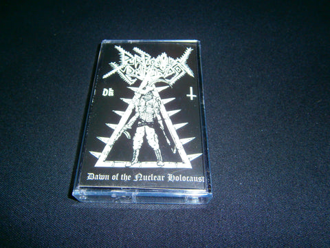 Purification Kommando - Dawn of the Nuclear Holocaust. 2012 reissue on Tape format of their infamous 2008 first demo with 6 tracks (including bonus) of Black Death Metal from Denmark. Limited Edition to 300 hand numbered copies comes with 4 panels J-Card. Sealed Item. Recommended for fans of Sadomator, Amputator and Baphomets Horns.