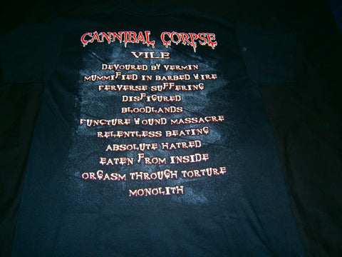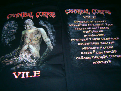 Cannibal Corpse - Vile. 100% ultra cotton Gildan brand T-Shirt high quality both sides printed. Available in Medium, Large and Extra-Large sizes.