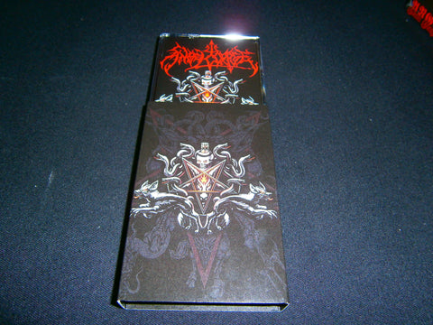 Angelcorpse - Death Dragons of the Apocalypse. 2023 reissue on pro tape format of their infamous 2002 live album with 15 tracks recorded in USA, France and Italy. Limited Edition comes with slipcase and 10 panels J-Card. Sealed Item. Essential for Collectors and Recommended for fans of Vital Remains, Diocletian and Krisiun.