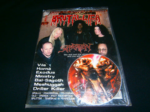 Brutallica # 11 Magazine edited in 2006 with 58 pages written in English with interviews to Suffocation, Vile, Horna, Ministry, Bal-Sagoth, Meshuggah, Driller Killer + News + tons of CD/vinyl reviews. Limited Edition comes in glossy paper and full colored pages + free compilation CD. Essential for Collectors.