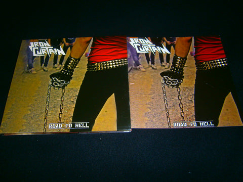 Iron Curtain - Road to Hell. 2018 reissue on digipak CD format of their infamous 2012 first full length album with 11 tracks of Speed Thrash Heavy Metal from Spain (including Black Fist EP + Forjando el Acero split EP as bonus). Limited Edition comes with 8 pages booklet lyrics included. Sealed Item. Recommended for fans of Running Wild, Exciter and Enforcer.