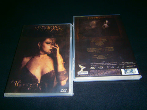My Dying Bride - For Darkest Eyes. 2005 reissue on DVD format of their infamous 1997 live album with 16 tracks of Death Doom Gothic Metal from the UK. Limited Edition includes two photo galleries, one about the band and one about the artwork and promotional videos. Sealed Item. Essential for Collectors and Recommended for fans of Katatonia, Paradise Lost and Draconian.